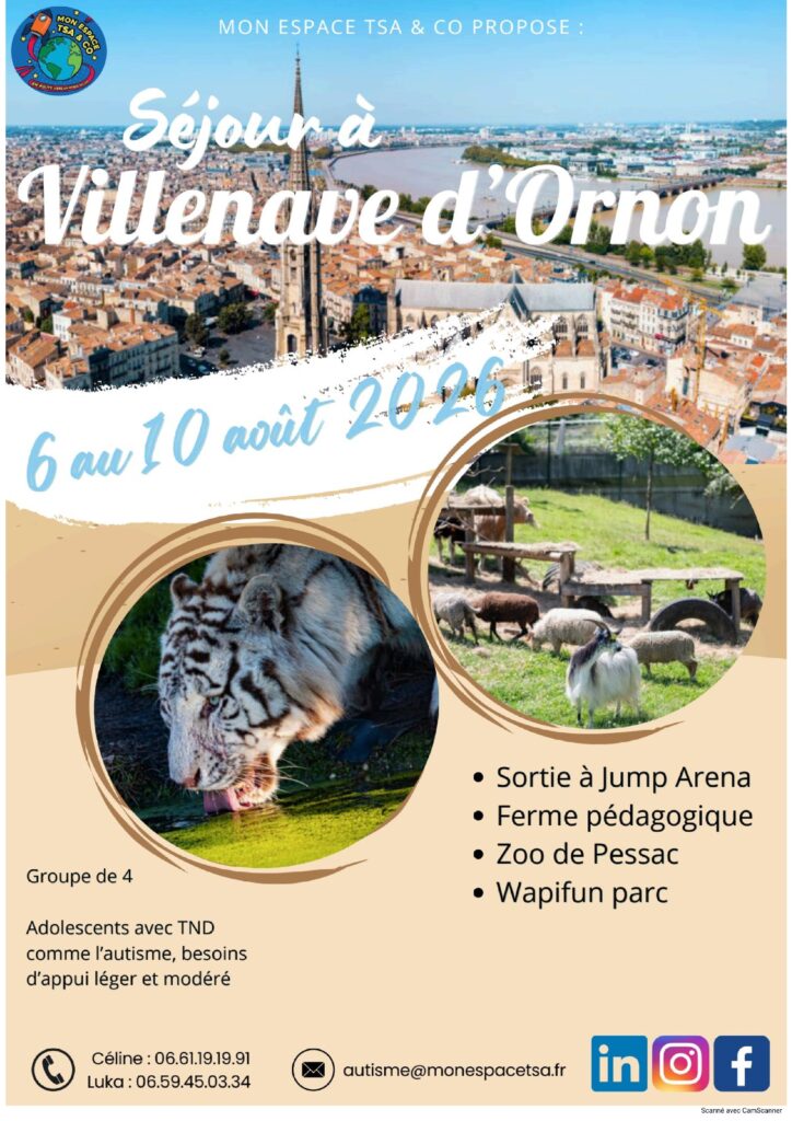 Cet été, Mon Espace TSA & Co propose un séjour adapté en Gironde, spécialement conçu pour des enfants et adolescents présentant un trouble du neurodéveloppement (TND), avec besoins d’appui léger à modéré.